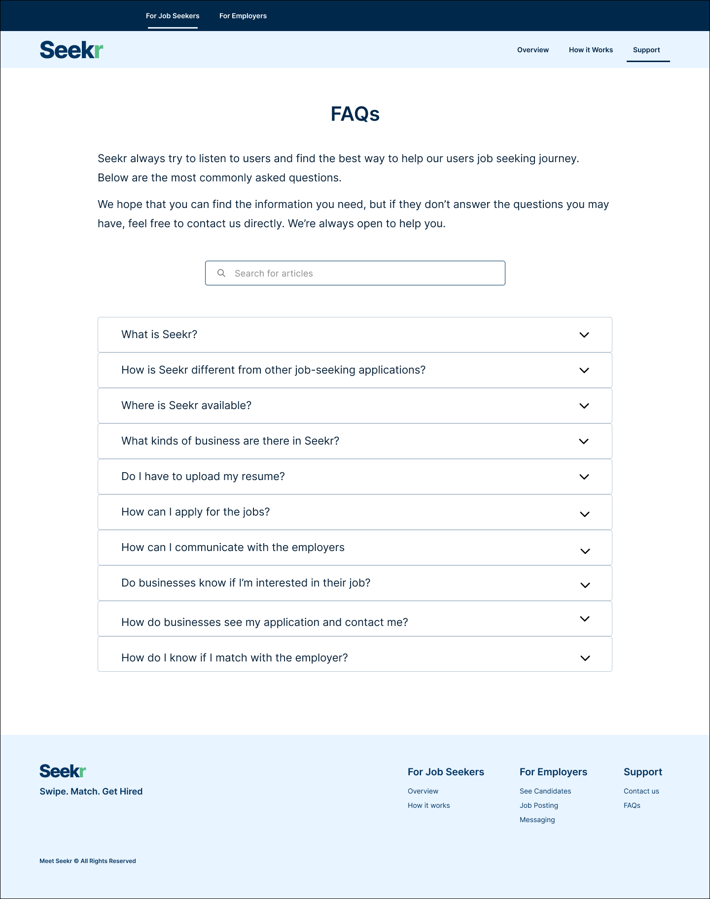 We explained step by step of using the Seekr application to get hired on the ‘how it works’ page.