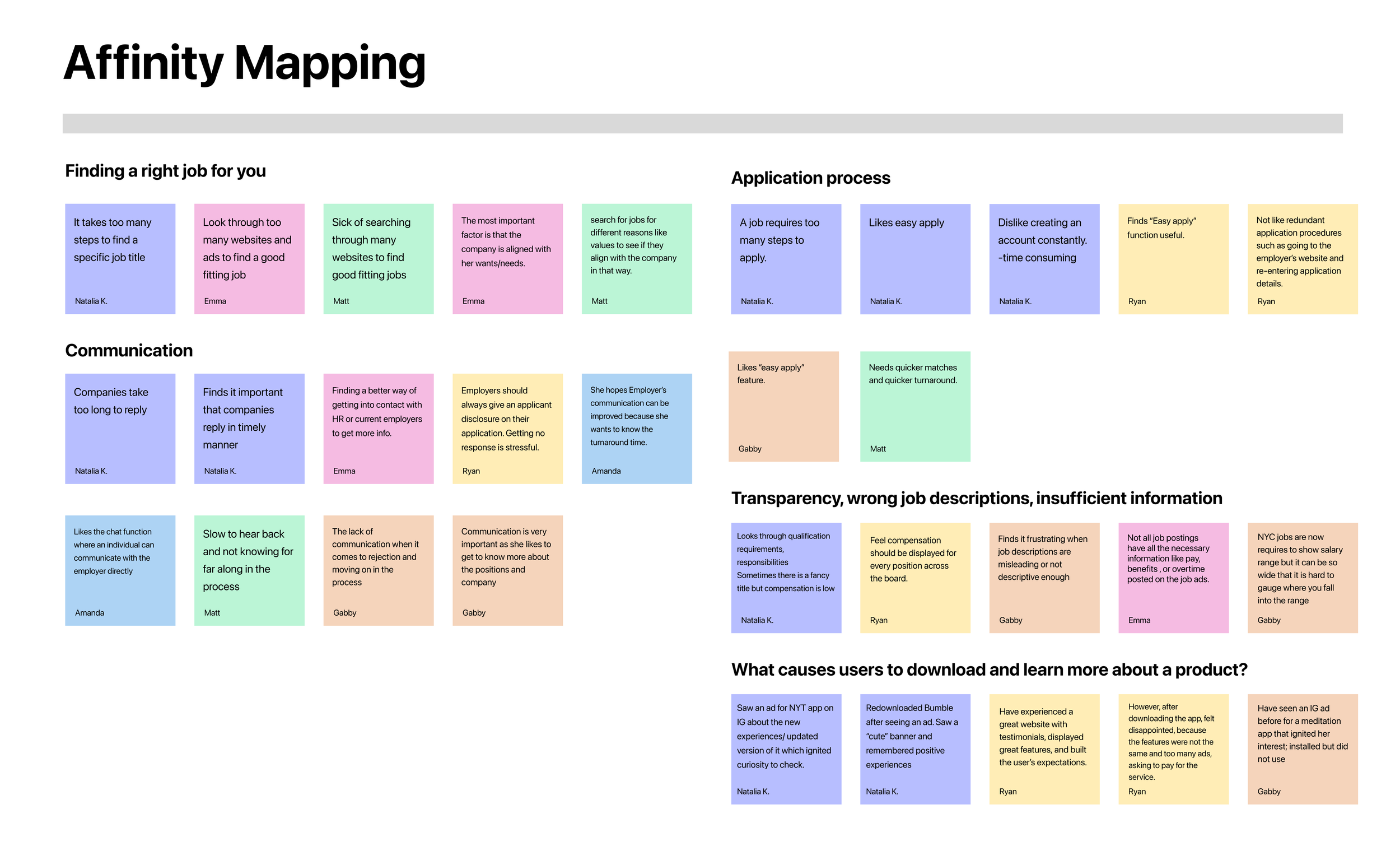 Then we created affinity mapping to find user's pain points and motivation.